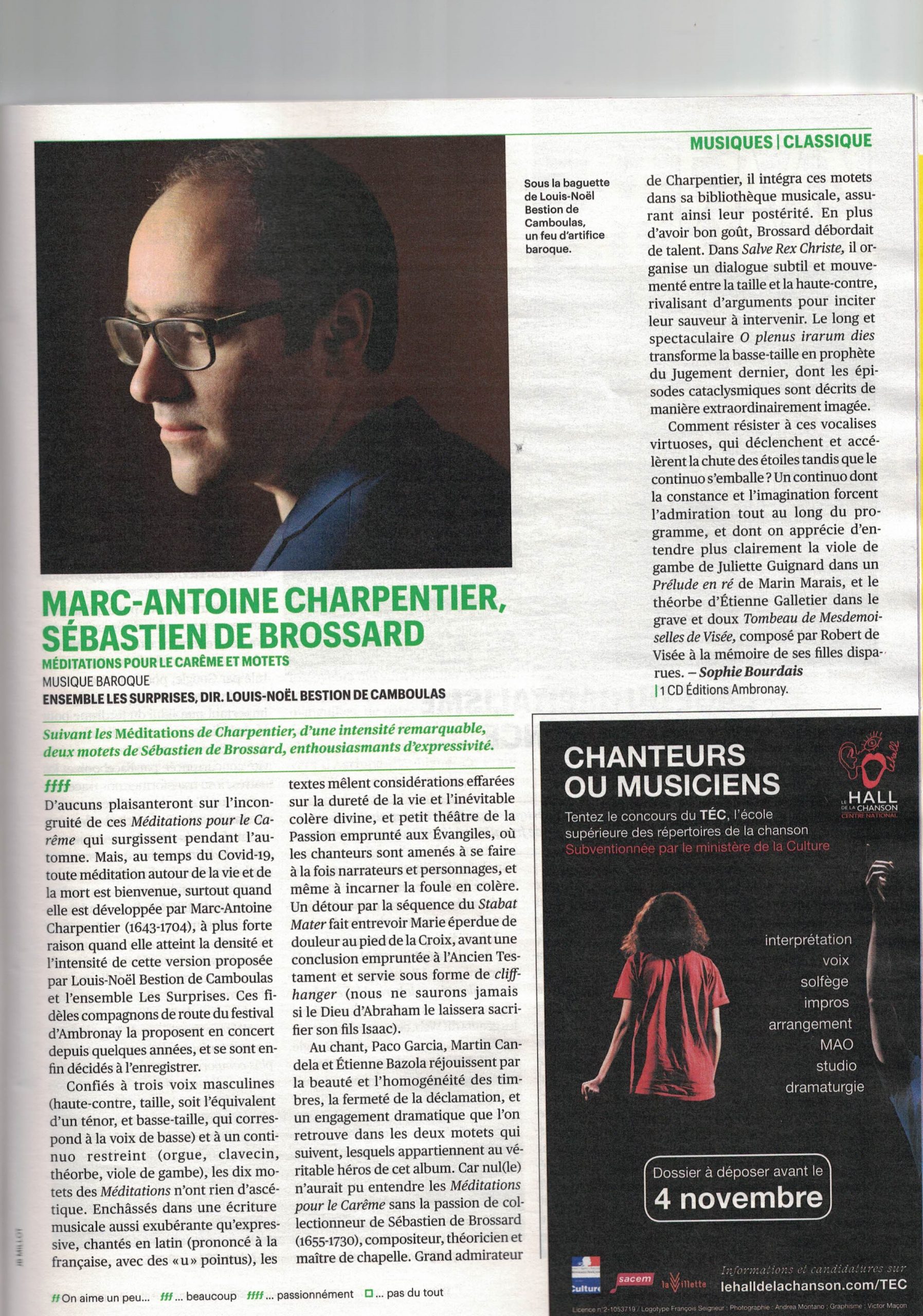 « Au chant, Paco Garcia, Martin Candela et Etienne Bazola réjouissent par la beauté et l’homogénéité des timbres, la fermeté de la déclamation, et un engagement dramatique […] Comment résister à ces vocalises virtuoses, qui déclenchent et accélèrent la chute des étoiles tandis que le continuo s’emballe ? Un continuo dont la constance et l’imagination forcent l’admiration tout au long du programme […] »