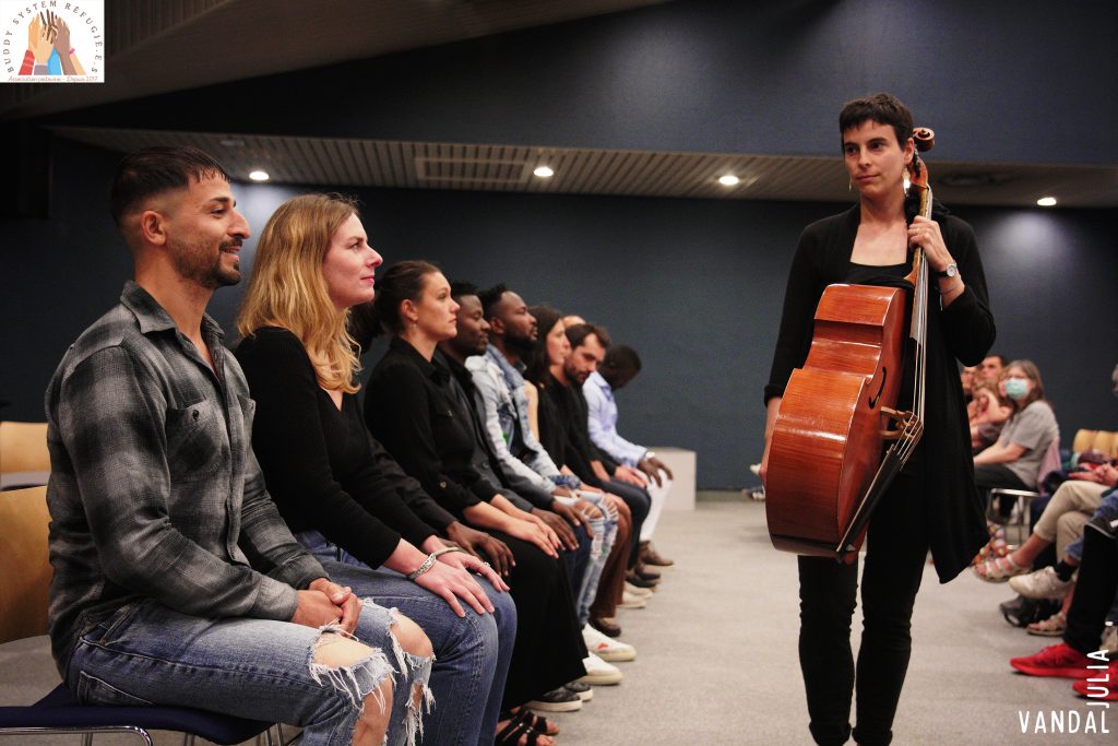 Une douzaine de participants, accompagnés par plusieurs bénévoles de Buddy System Réfugiés et des membres des CEMEA ont pu profiter de ce parcours d’éducation artistique et culturelle proposé par l’ensemble Les Surprises :